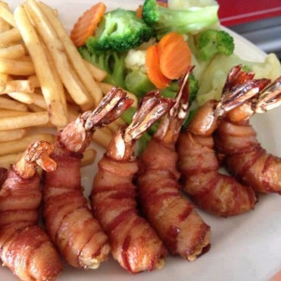Es empanizado rematado con 5 camarones mariposa empanizados.