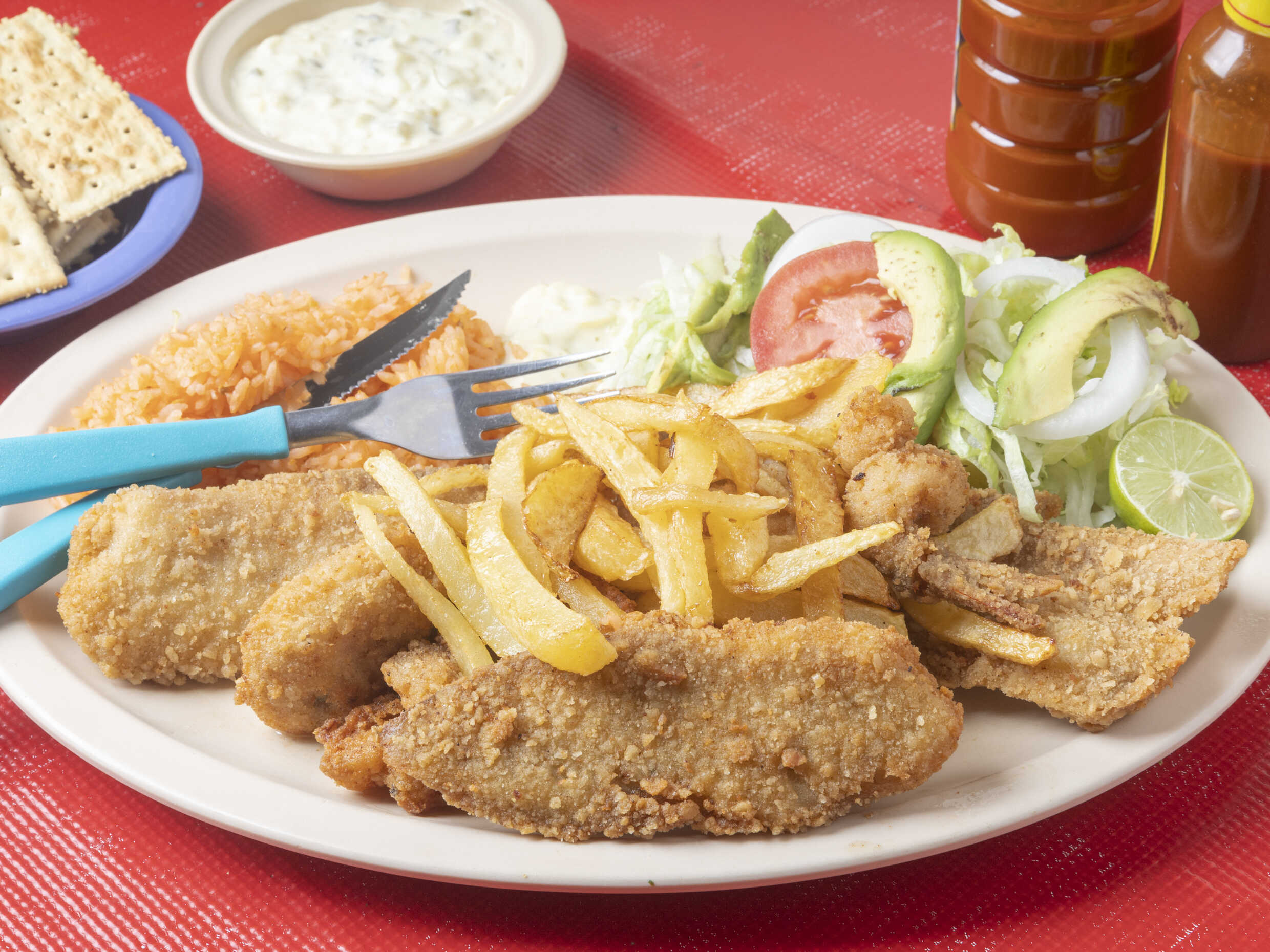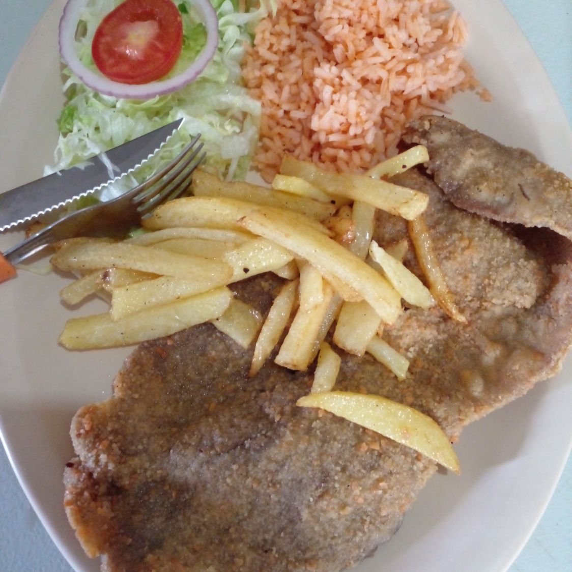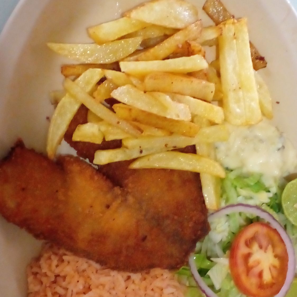Filete empanizado y coctel chico.