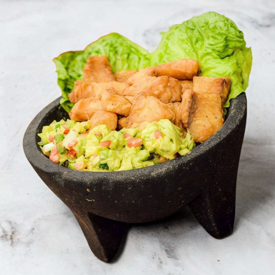 Chicharrón de pescado acompañado de guacamole con pico de gallo.