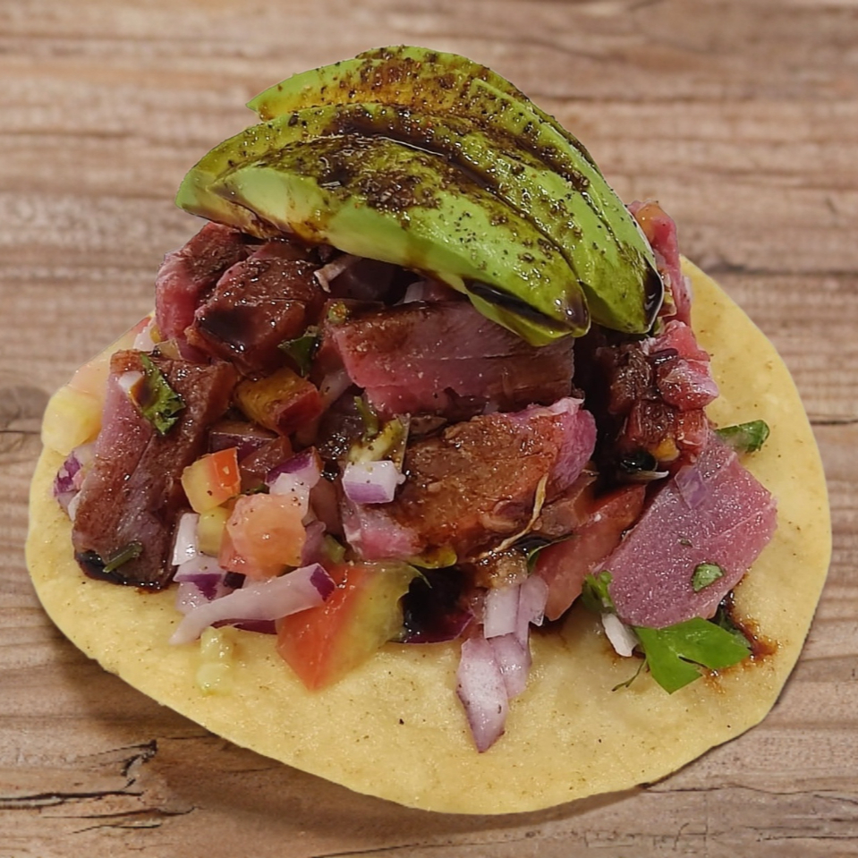 80 gr. de Atún Nacional con cebolla morada, cilantro, tomate y limón.