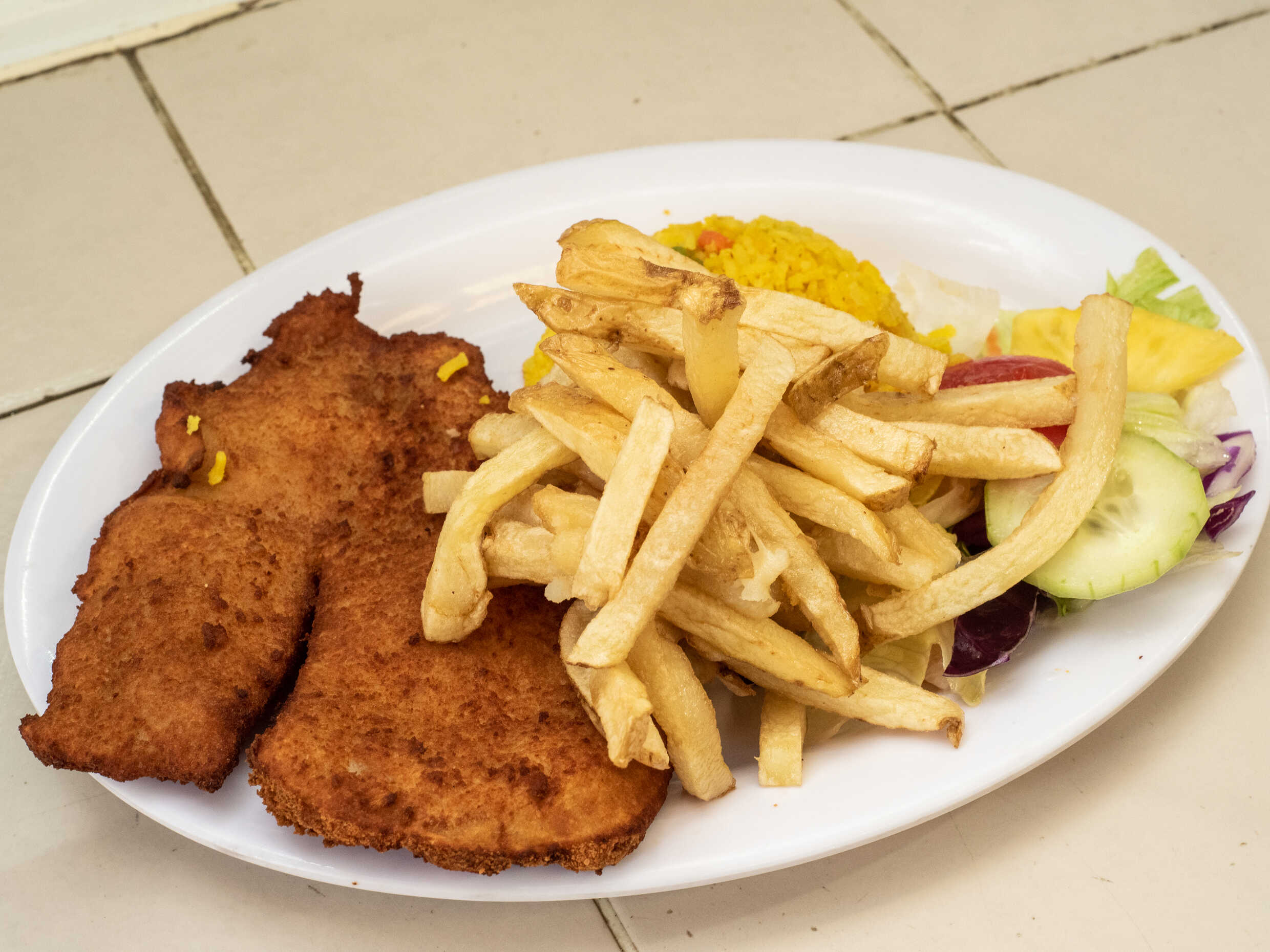 2 Filetes sencillos cada uno con ensalada, arroz, y papas.