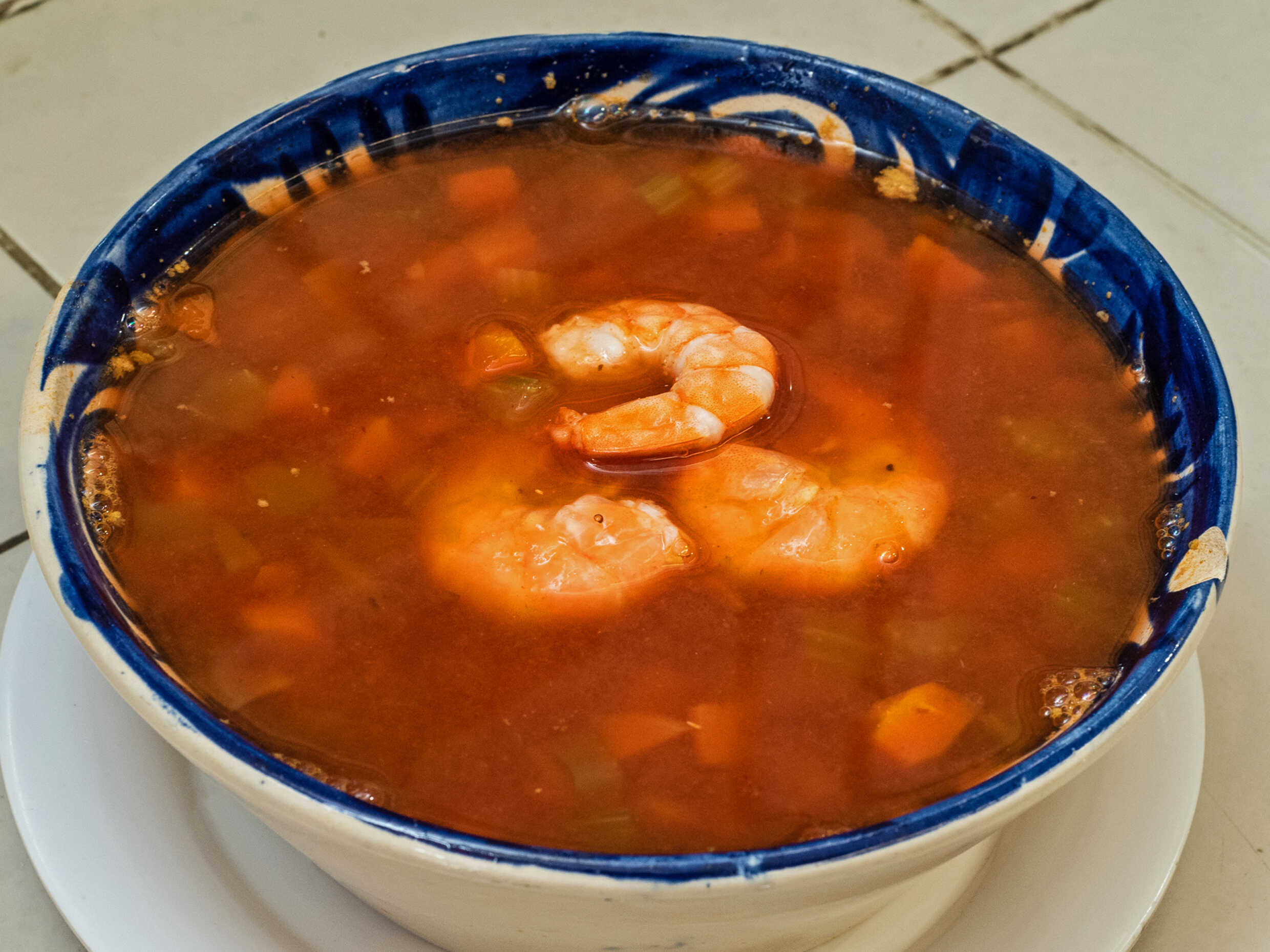 1 Sopas de mariscos y 1cócteles camarón chico.