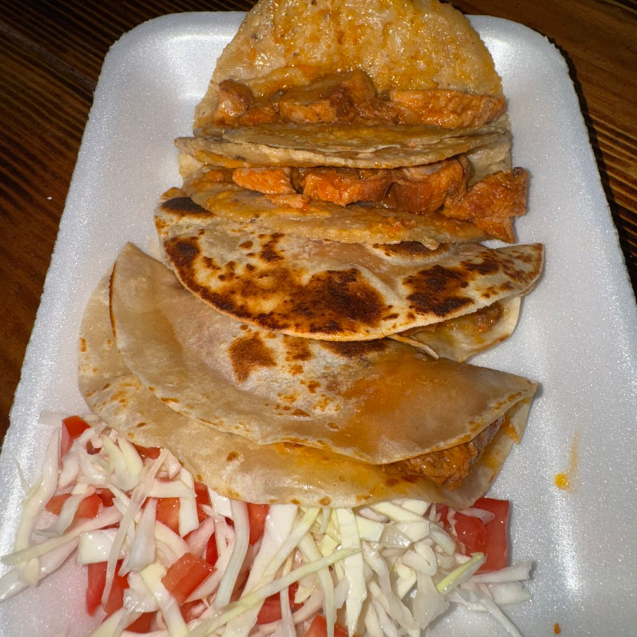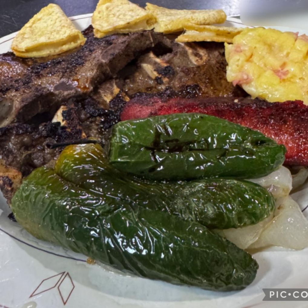 costilla cargada 350 grs con sus quesadillas.salchichas.y chiles toriados