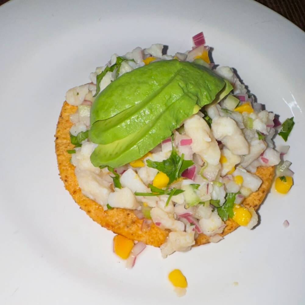 1 CAMRONES RELLENOS 1 TOSTADA DE CEVICHE