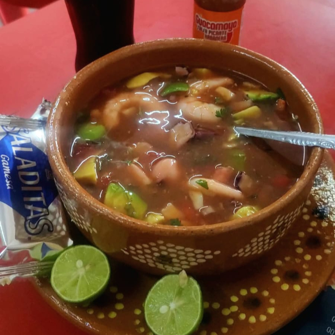 Mezcla de pulpo, camaron y Ceviche, acompañado de pico de gallo y aguacate.