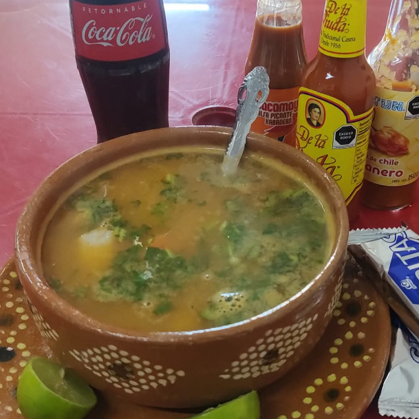 Litro de sopa de mariscos.