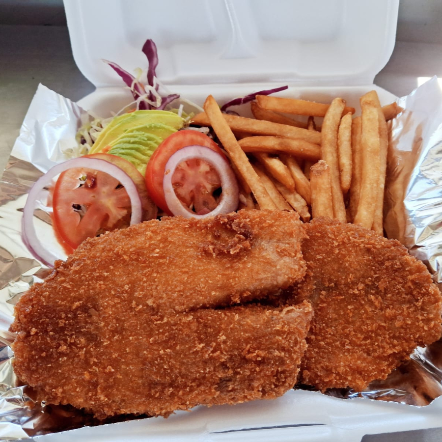 Exquisitos filetes empanizados con receta de la casa, acompañados de arroz, papas y ensalada.