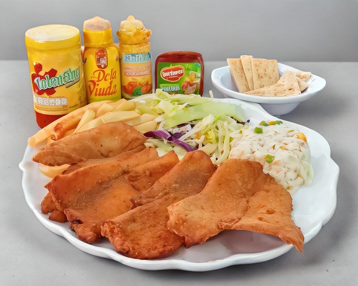 Delicioso chicharrón de pescado acompañado de guacamole y tortillas tatemada.