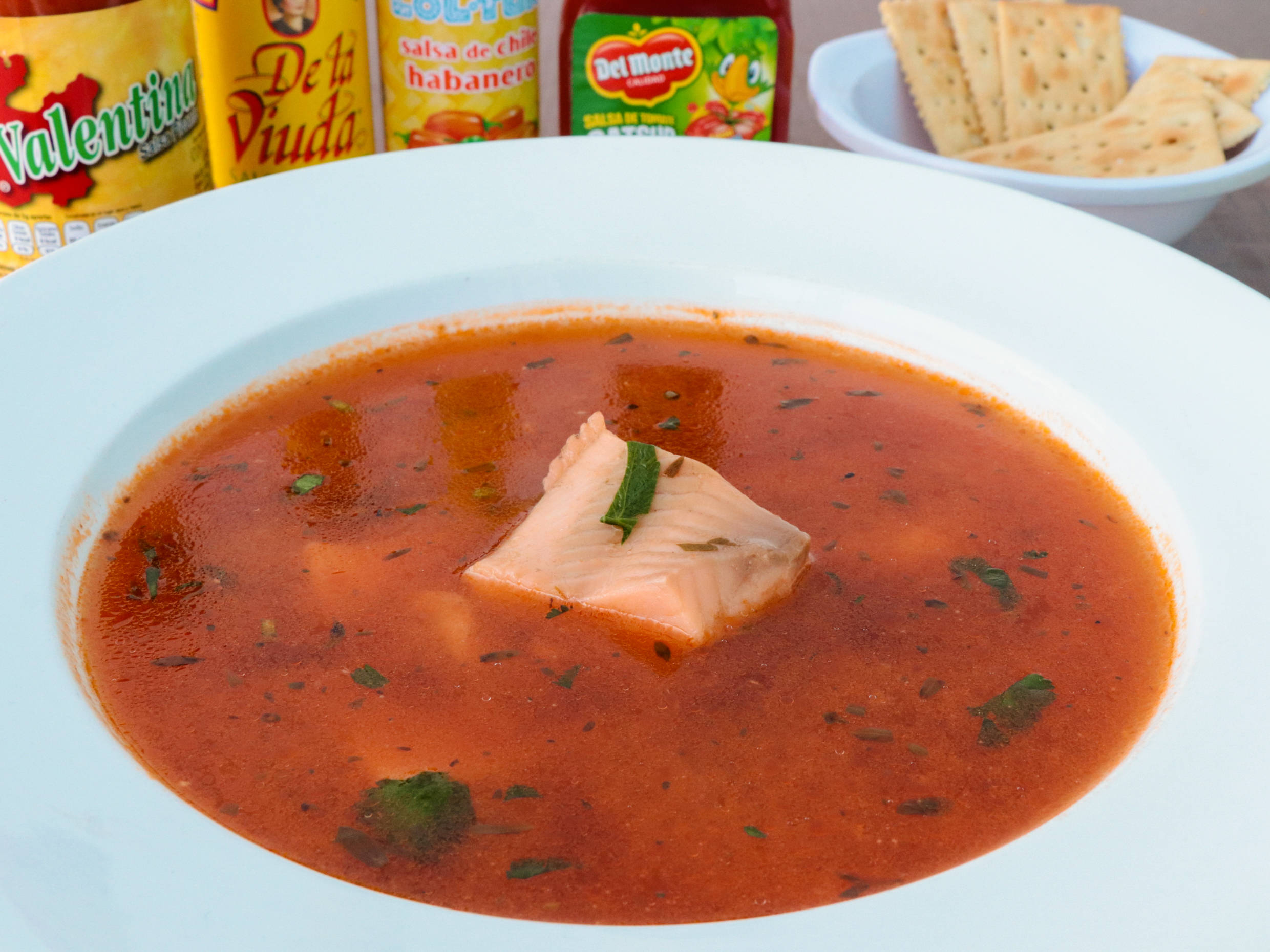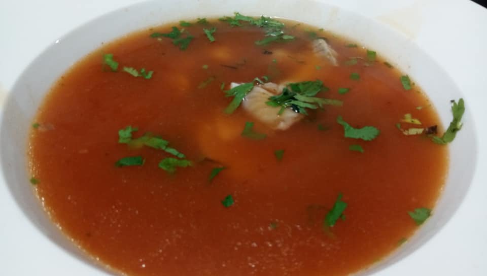 Delicioso y calentito caldo de pescado.