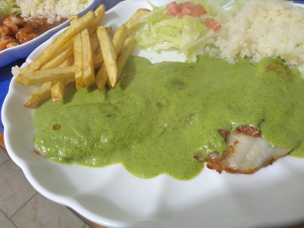 Exquisito y delisiosos filete de pescado con hierbas finas en base al cilantro.