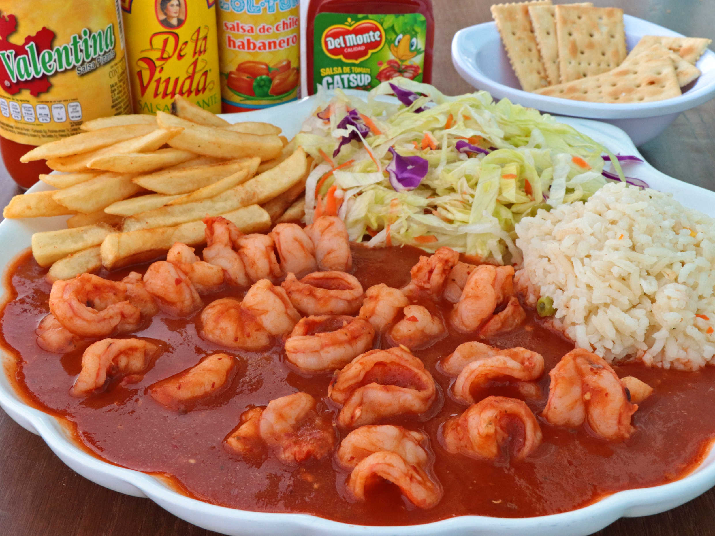 Exquisito platillo de camarón con un toque salsa diabla.