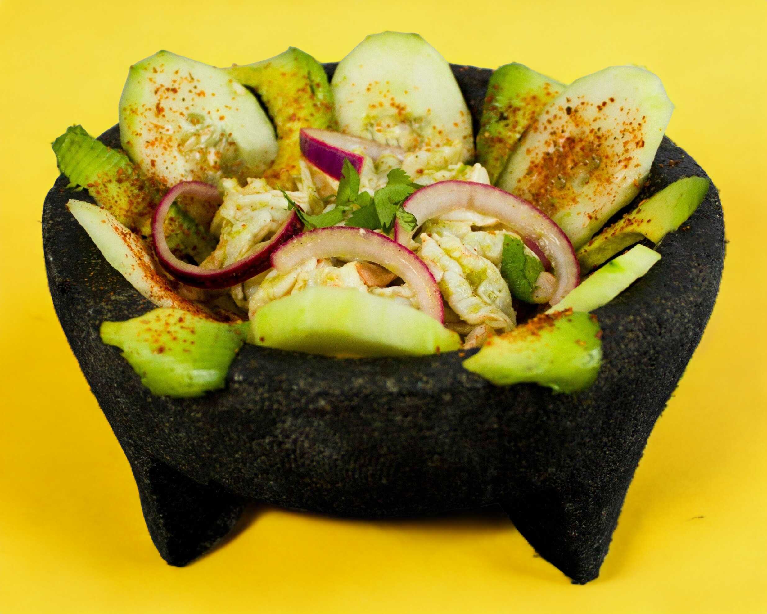 Este platillo incluye: Camarón ( 140 gramos aprox), salsa especial de la casa elabora a base de capsut, cebolla morada y blanca, tomate y cilantro . Esta es una porción porción