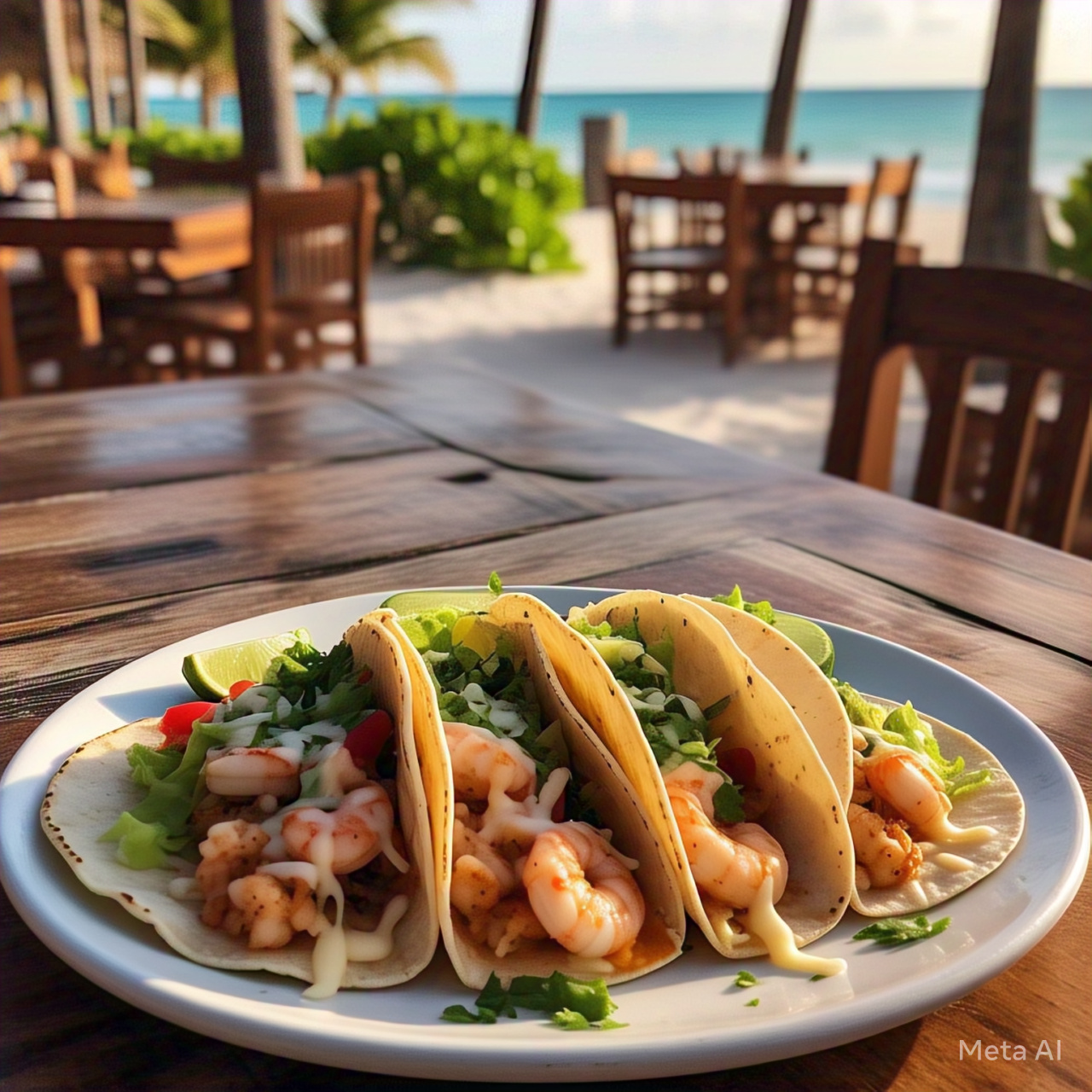 4 piezas, los de cajón, tortilla doradita, queso del bueno, mezcla de verduras con el camarón bien sazonado, acompañados de totopos, limón y salsa de la casa.