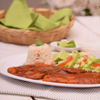 Filtete bañado con ajo y rajitas de chile cascabel para darle ese sabor especial, acompañados de arroz, papas a la francesa, ensalada verde, salsa de la casa, totopos y limón.
