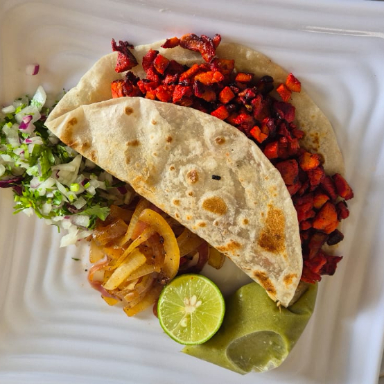 5pz en maíz,verduras,cebolla,salsas y limon.