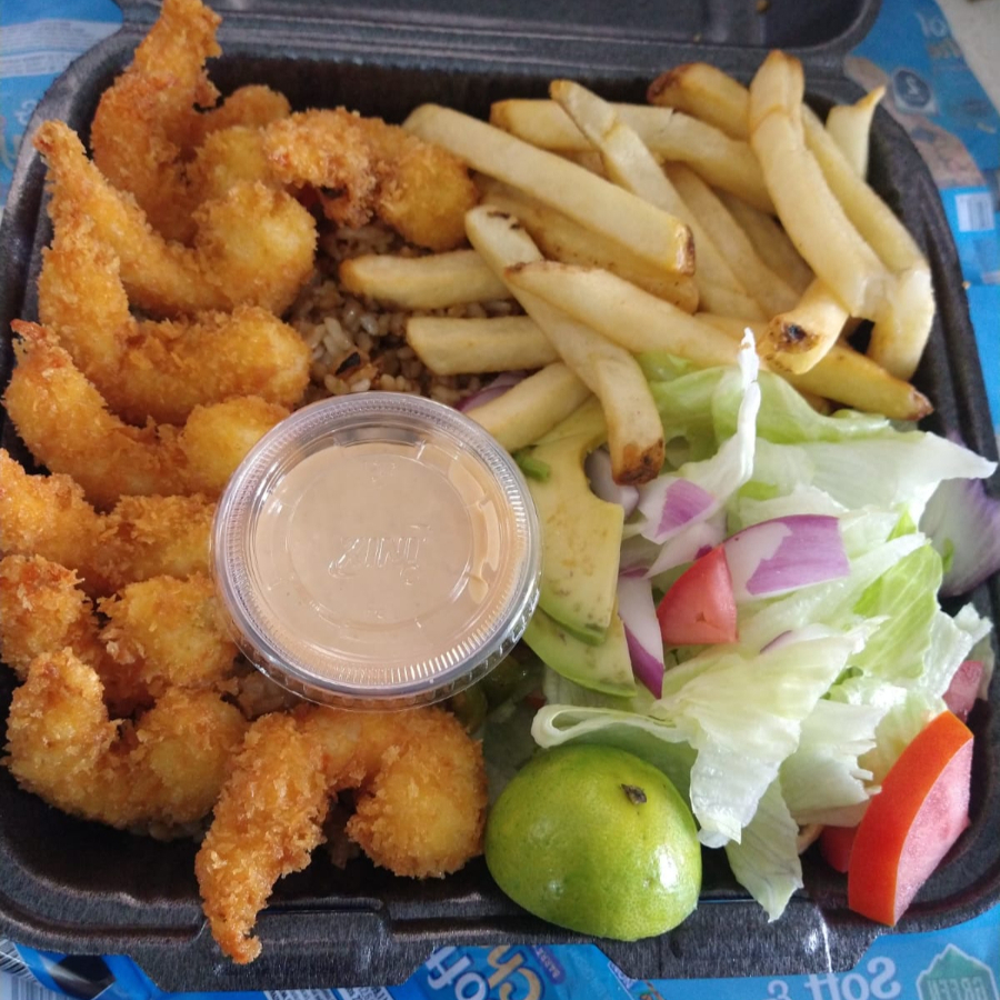 10 pz camarón emp,arroz,papas,ensalada, y aderezos