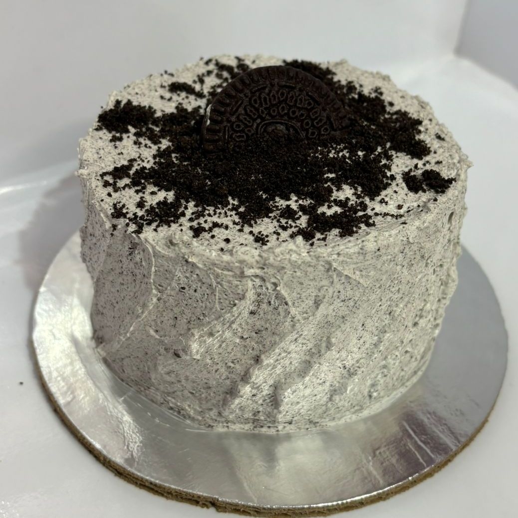 Elaborado con pan vainilla y trozos de galleta oreo, Relleno y cubiertos de crema chantilly y trozos de galleta