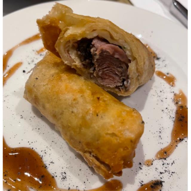FILETE DE RES ENVUELTO EN JAMON SERRANO, CHAMPIÑONES, ENVUELTO CON CREPA Y MASA HOJALDRE.