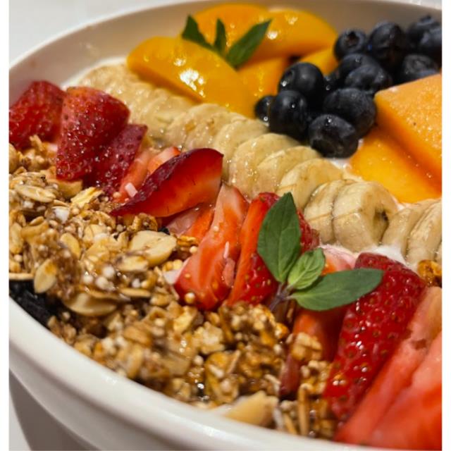 YOGUTH GRIEGO, PLATANO, FRESA, MELON,DURAZNO,FRUTOS ROJOS Y GRANOLA CASERA.