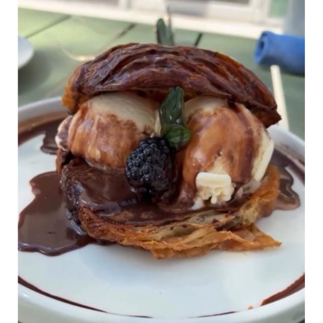 Chocolatin relleno de Nieve de vainilla, leche condensada y salsa de chocolate