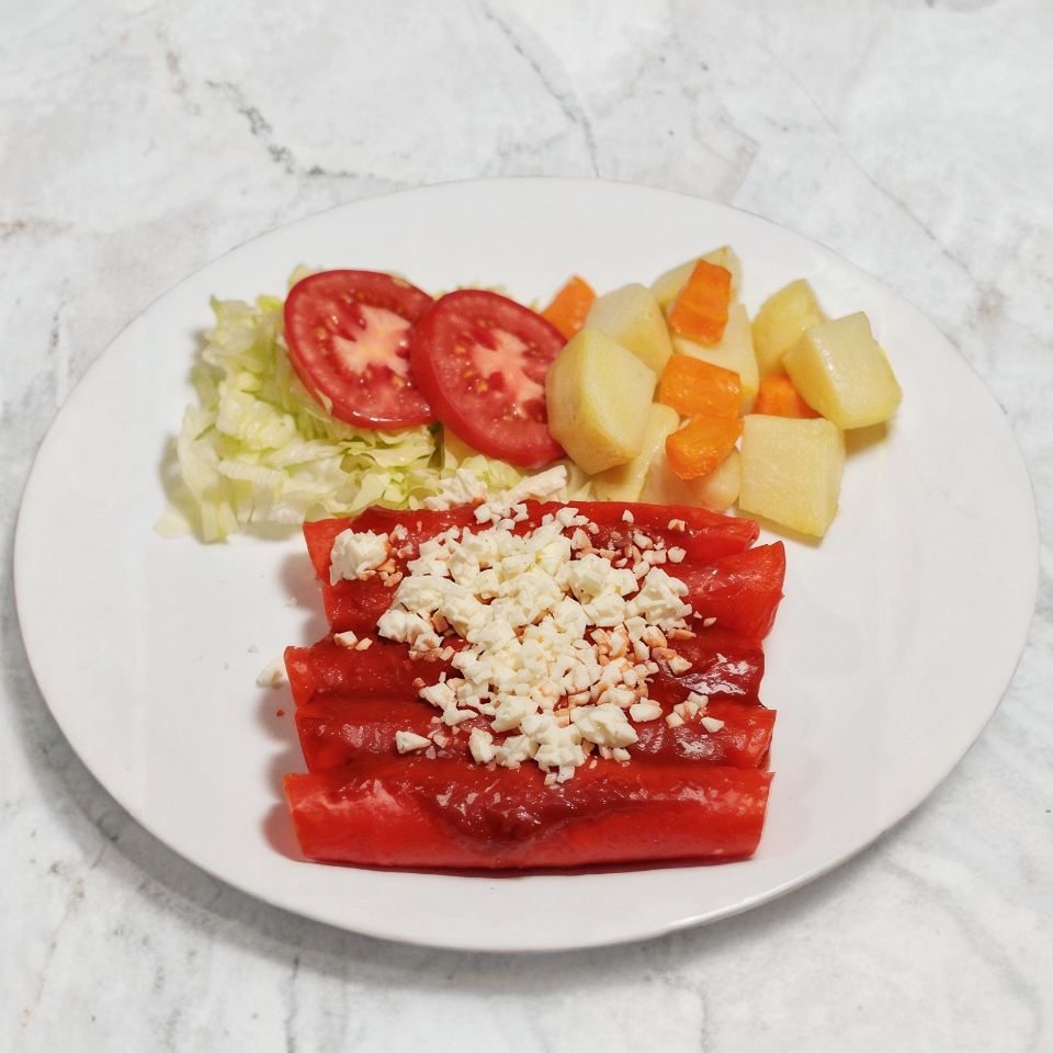 Exquisitas enchiladas rojas con queso fresco de calidad acompañadas de papita, zanahoria y ensalada