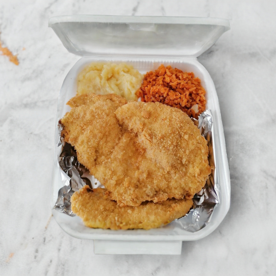 Filete tilapia empanizado ó al vapor acompañado de tus 2 guarniciones favoritas