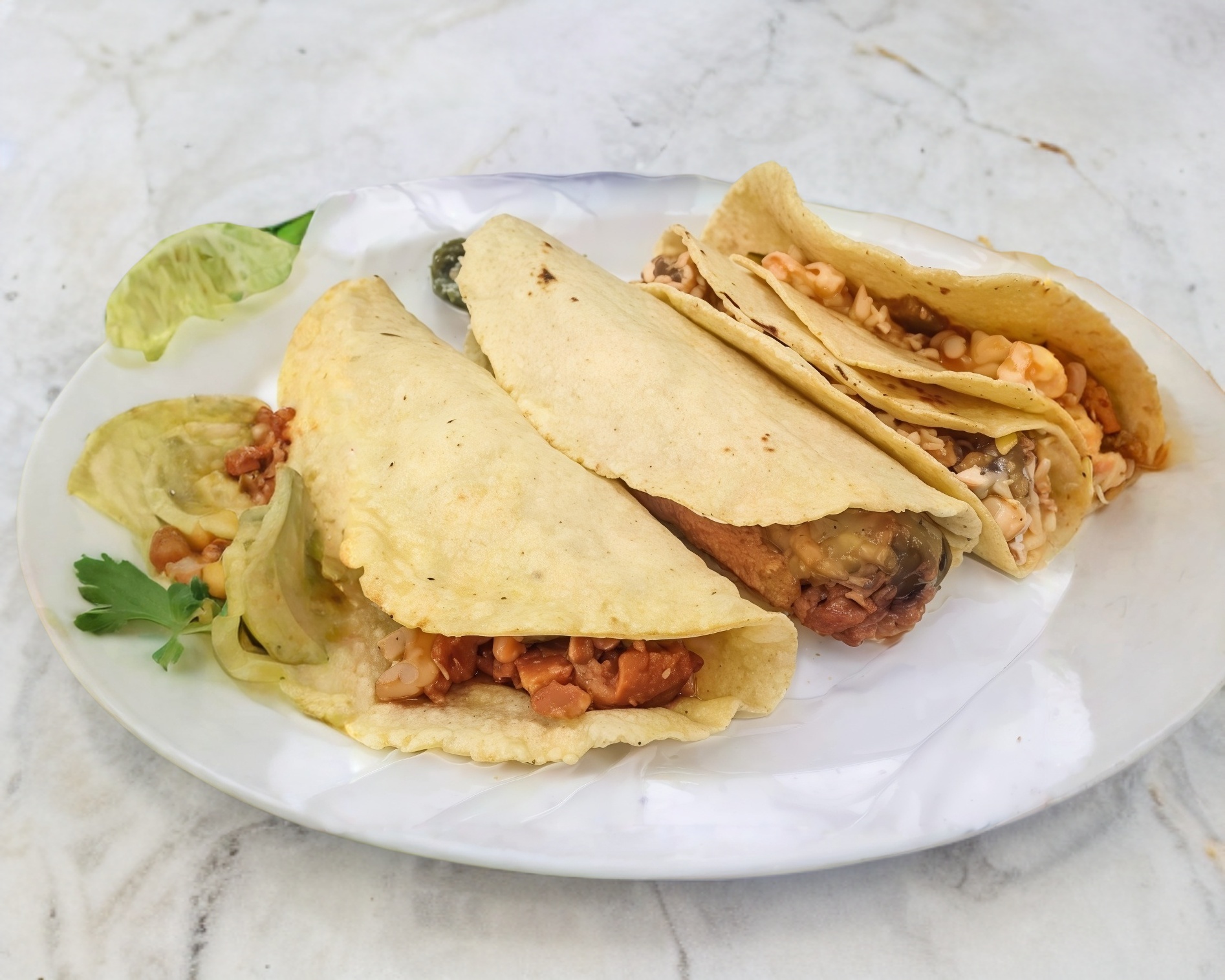 Complementos: Repollo c/cilantro picado ,salsas y limon.