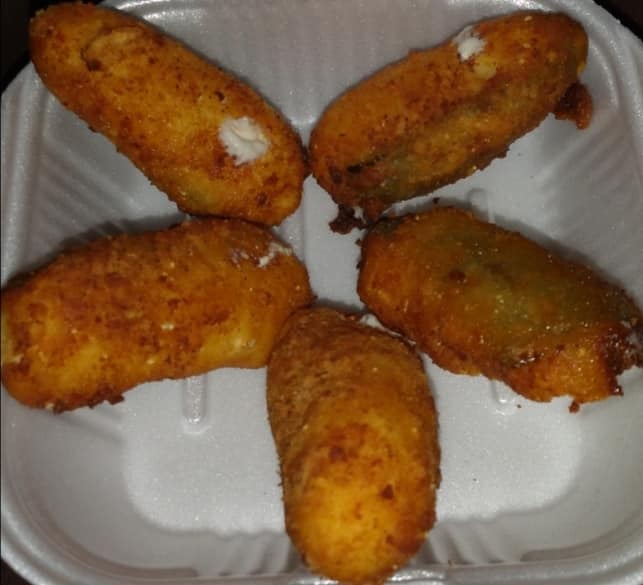 5 Jalapeños empanizados, rellenos de queso crema, acompañados de salsita cremosa de chipotle.