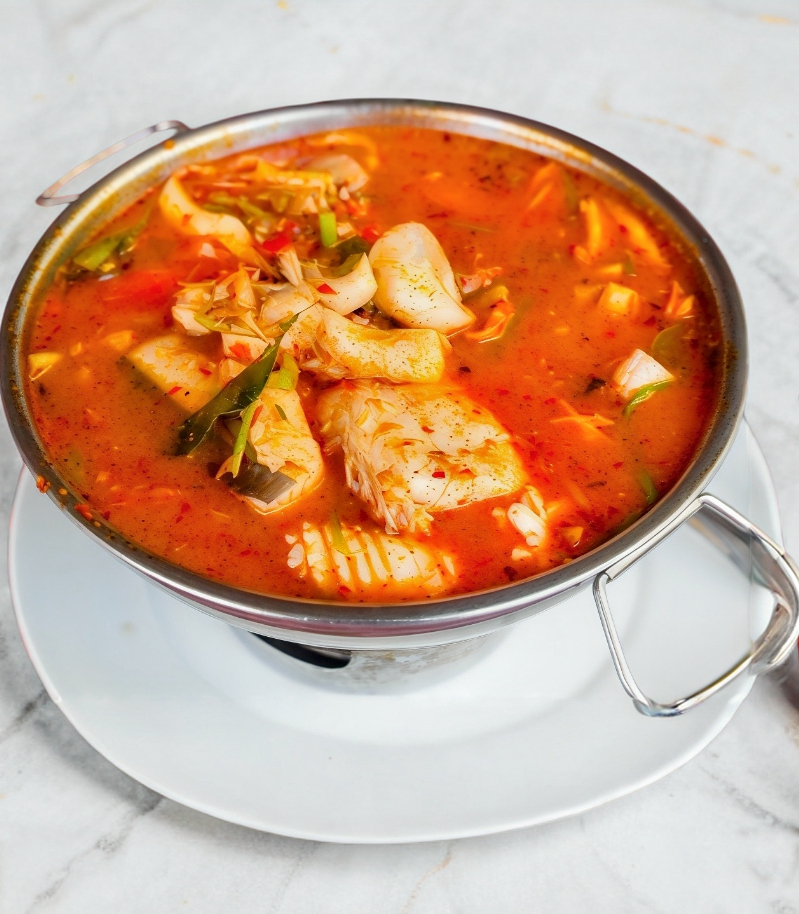 Caldo casero tradicional con filete de pescado fresco.