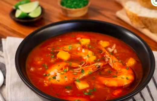 Caldo casero tradicional con camarón fresco.