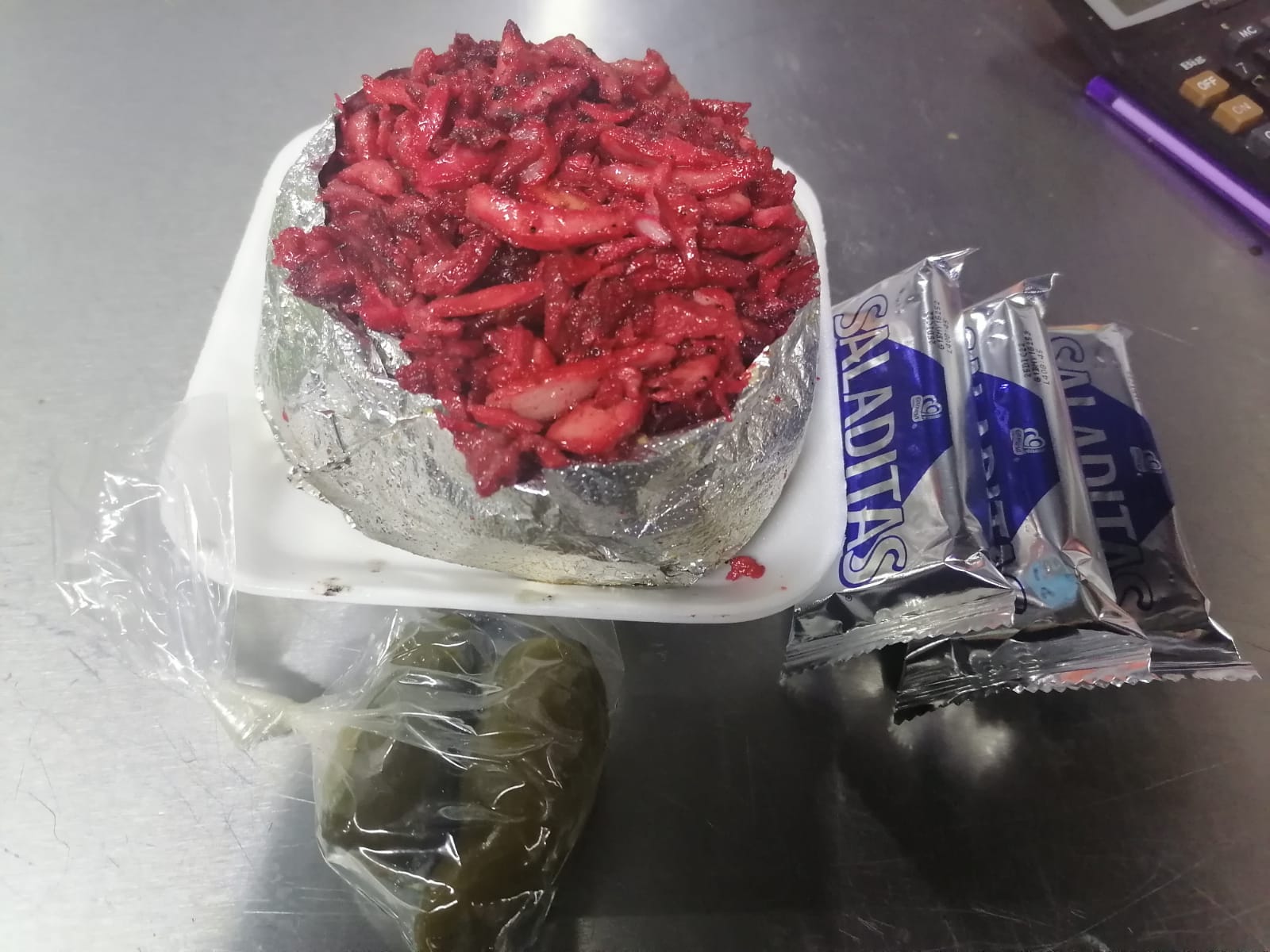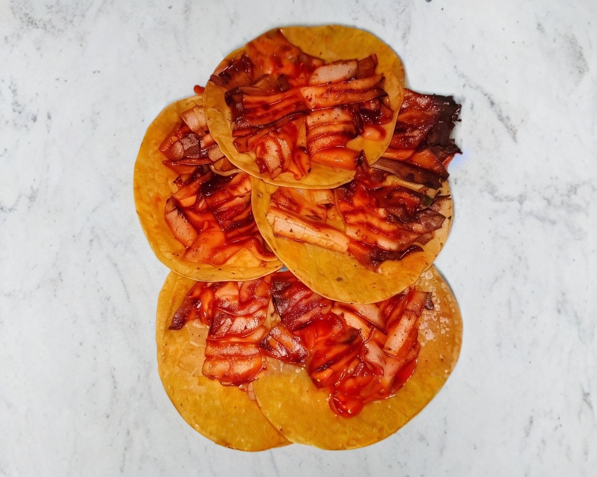 Son cinco tortillas de carne adobada, lo clásico en los regios muy ricos.