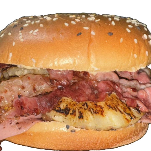 2 CARNES, DOBLE PORCION DE PIÑA, DOBLE PORCION DE JAMON, TOCINO, DOBLE PORCION DE QUESO AMARILLO, ADEREZO WIGLY´S HONEY.(INCLUYE PAPAS A LA FRANCESA CON QUESO, RANCH, TOCINO DESHIDRATADO).