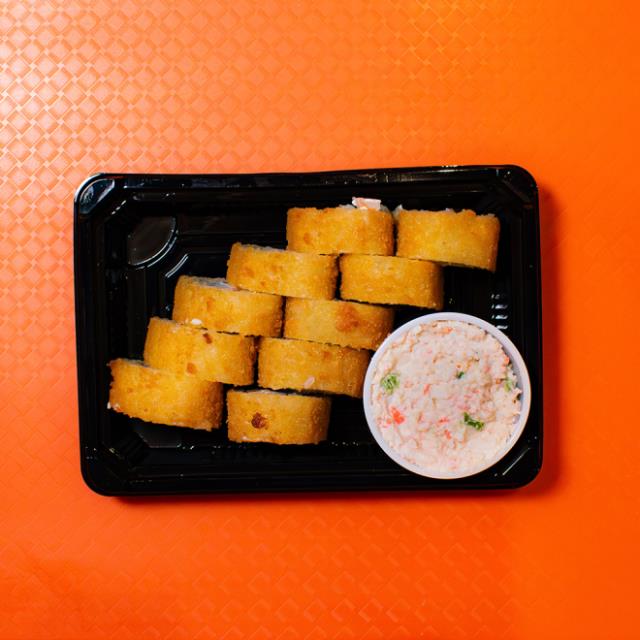 Camarón Empanizado, Pasta Tampico, Queso Crema, Aguacate, Furikake y Tártara.