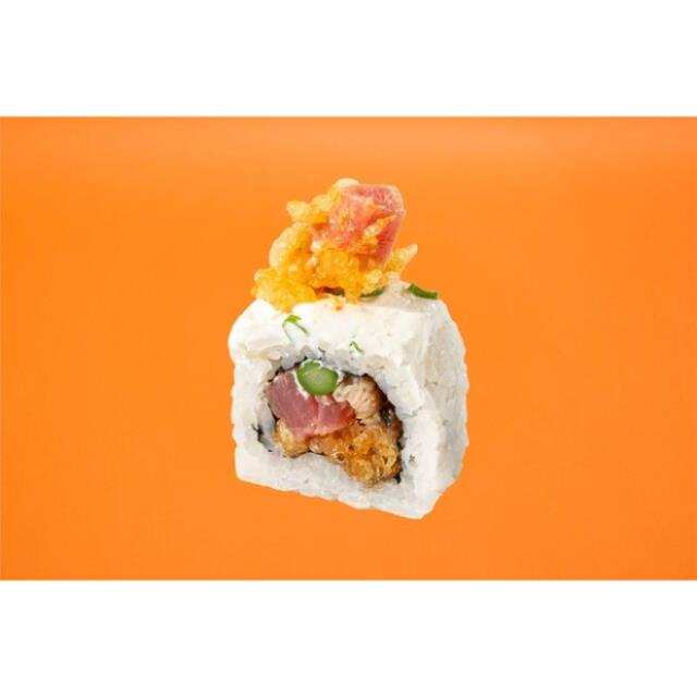Atún spicy, tempura flakes, espárrago, anguila ( ) Atún spicy, tempura flakes, queso crema, cebollín