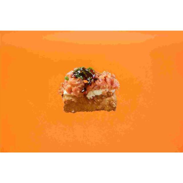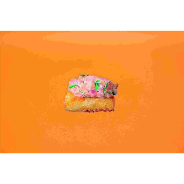 Arroz crujiente, atún, yuzu, alioli, cebollín