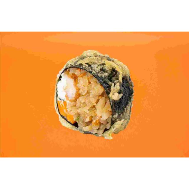 Camarón empanizado, queso crema, zanahoria, arroz frito