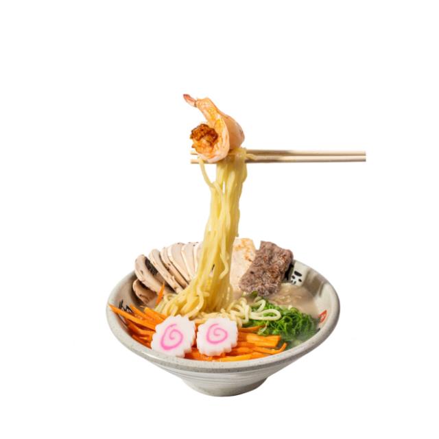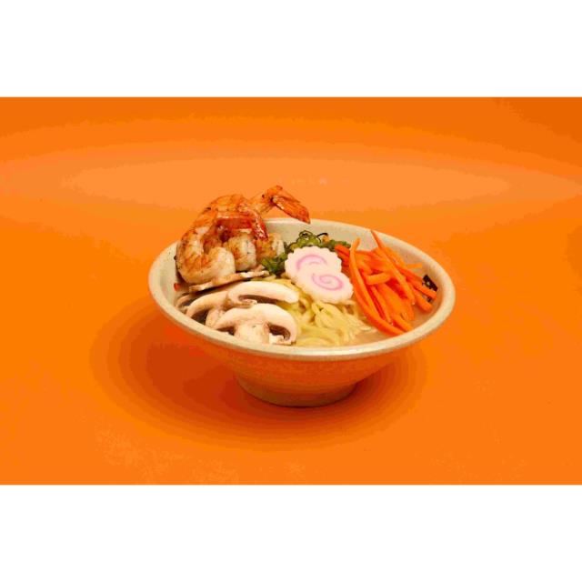Pasta de ramen con cebollín, champiñones, zanahoria, naruto y camaron