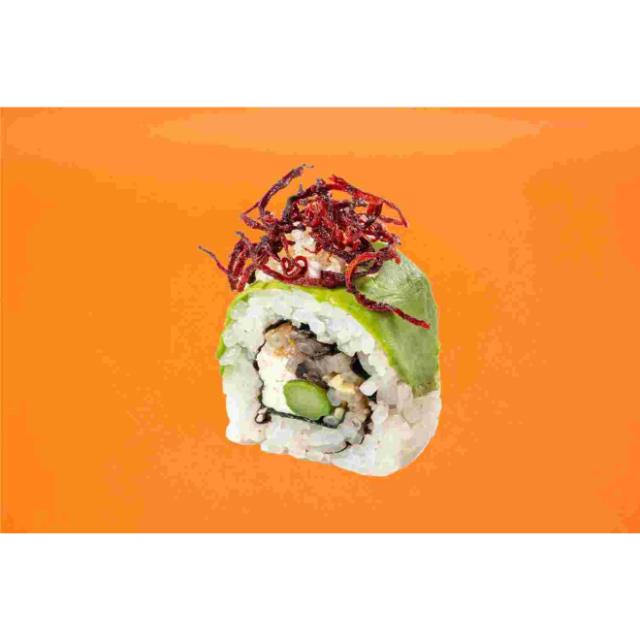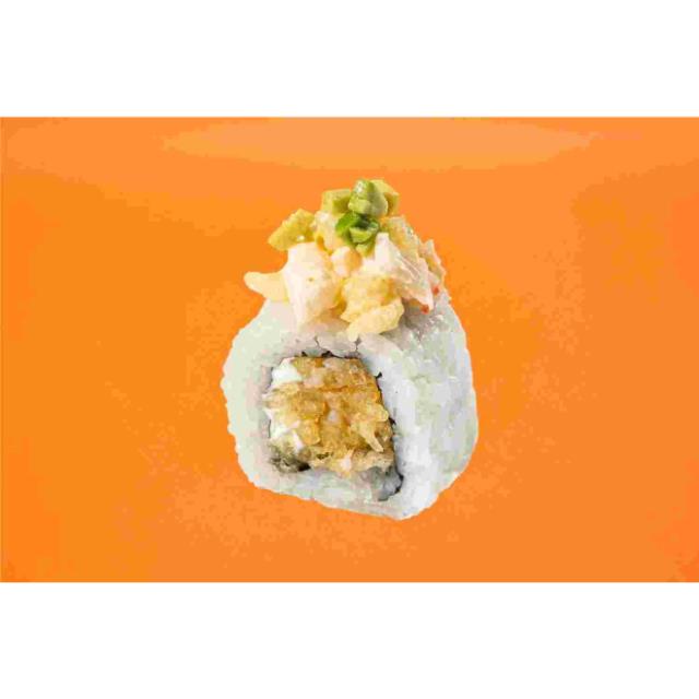 Kanikama spicy, queso gouda ( ) Aguacate, salsa de anguila, ajonjolí