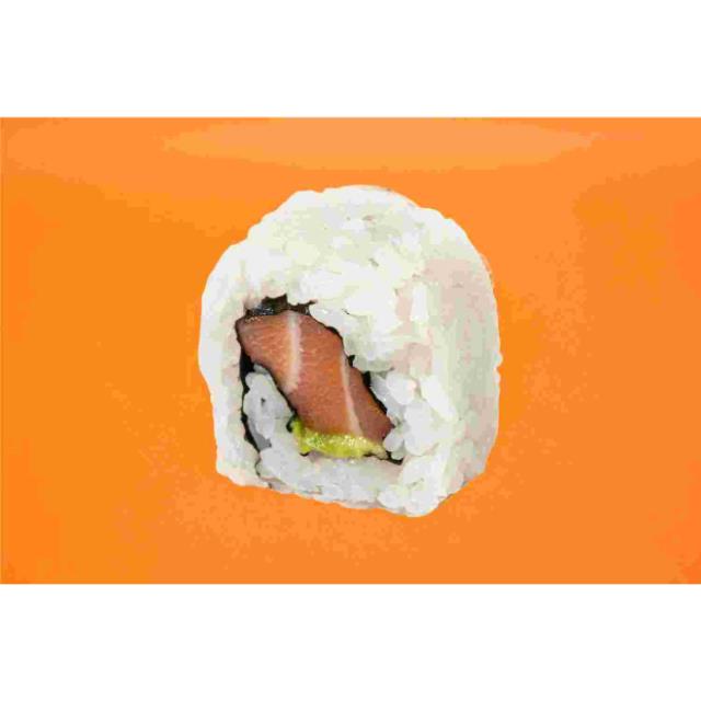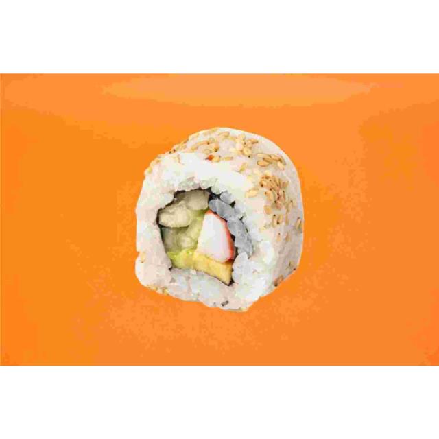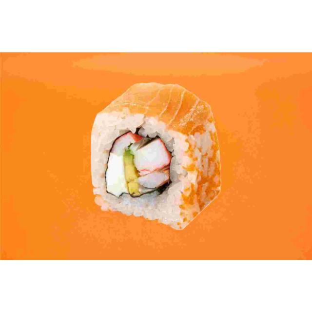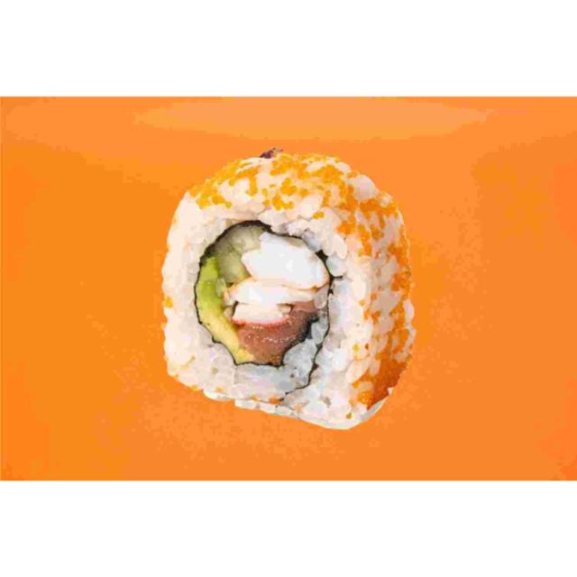 Camarón, surimi, salmón, pepino y aguacate. - masago