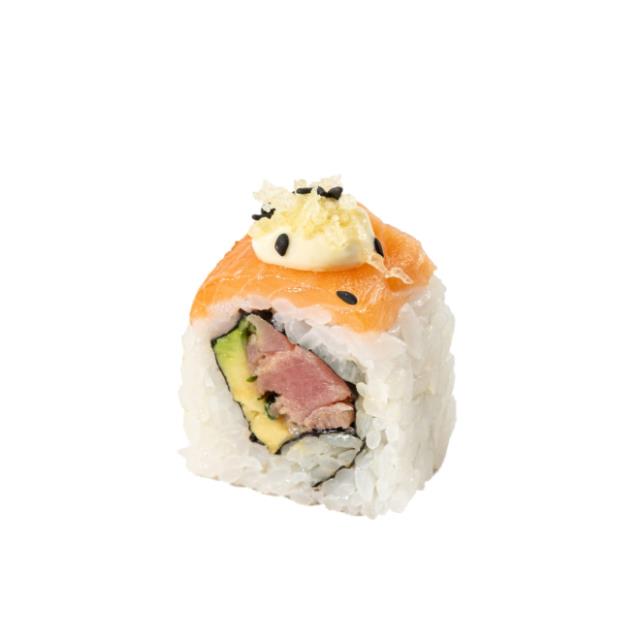 Kanikama, aguacate, pepino y anguila tempura. - Salmón, cebollín, tempura flakes, salsa mongolian y salsa de anguila.