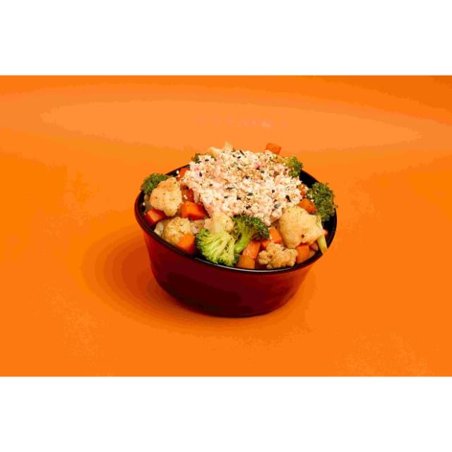 Tofu, espárrago, champiñón, germen de soya ( ) Aguacate, betabel, tempura flakes, alioli vegano, honey sriracha