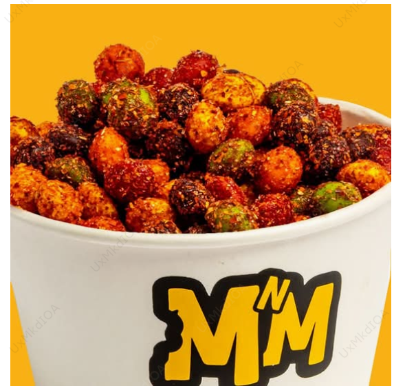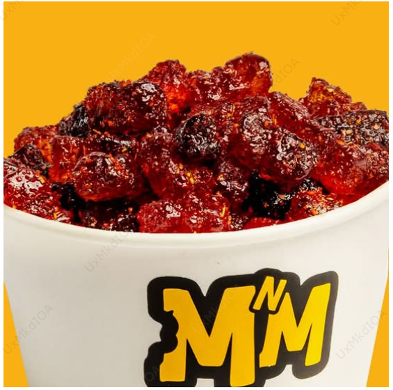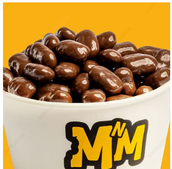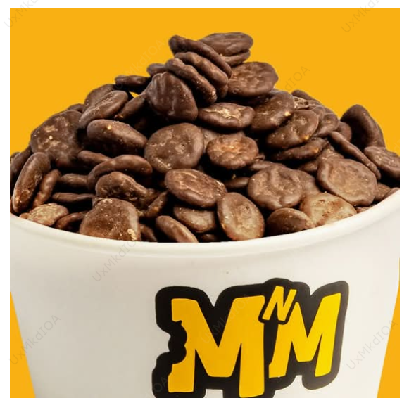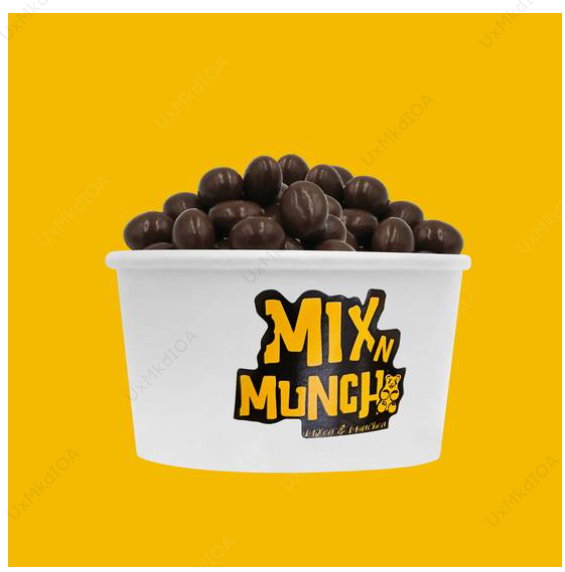 Vaso mini munch 6 oz lleno con riquísimas pasas cubiertas de chocolate premium.
