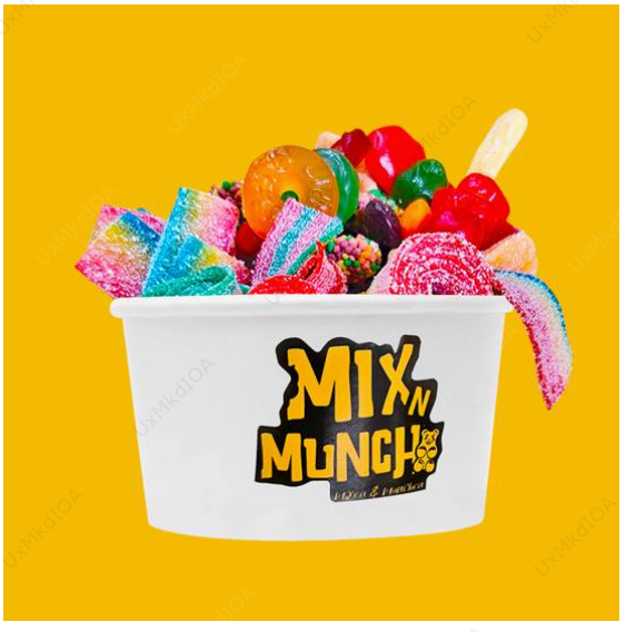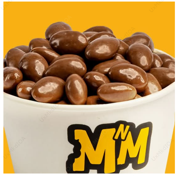 Vaso mini munch 6 oz lleno con riquísimas almendras cubiertas de chocolate premium.