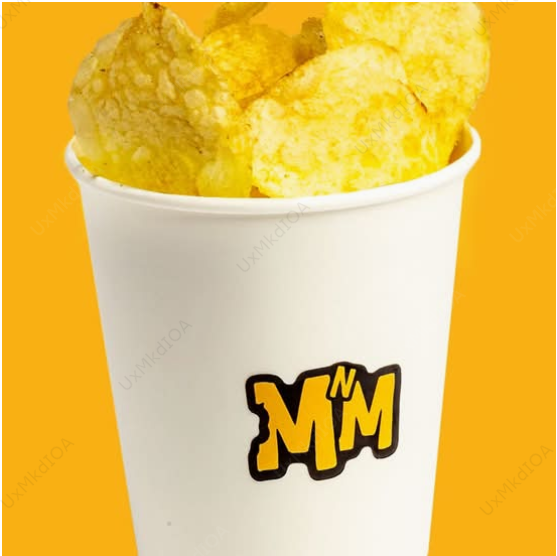 Vaso veggie & chips 32 oz con crujientes y deliciosas papas fritas, incluye complementos para acompañar tu orden. Prepáralas a tu gusto.
