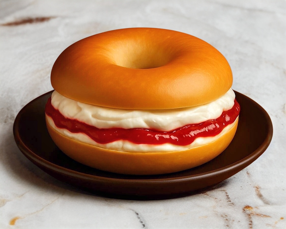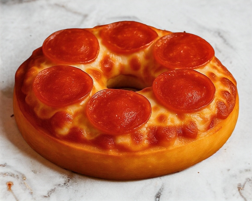 Pizza hecha con bagel como base, salsa de tomate y pepperoni
