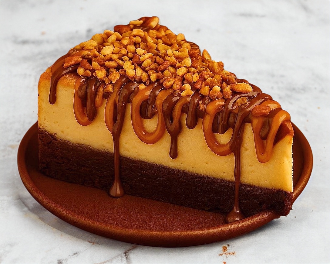 Rebanada de exquisita mezcla de Oreo, nuez, cajeta y chispas de chocolate