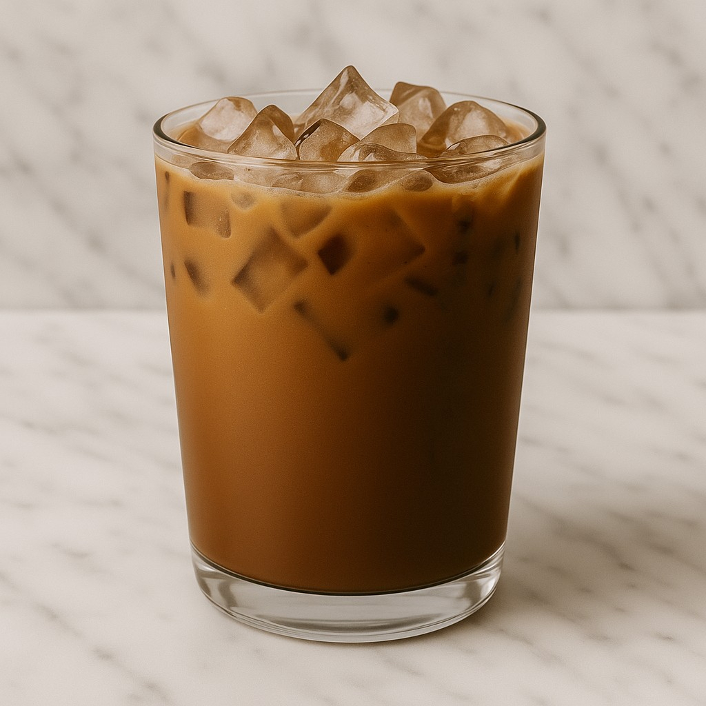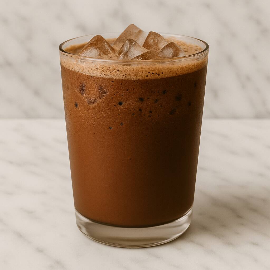 16 oz de café frío con leche y chocolate oscuro servida con hielo