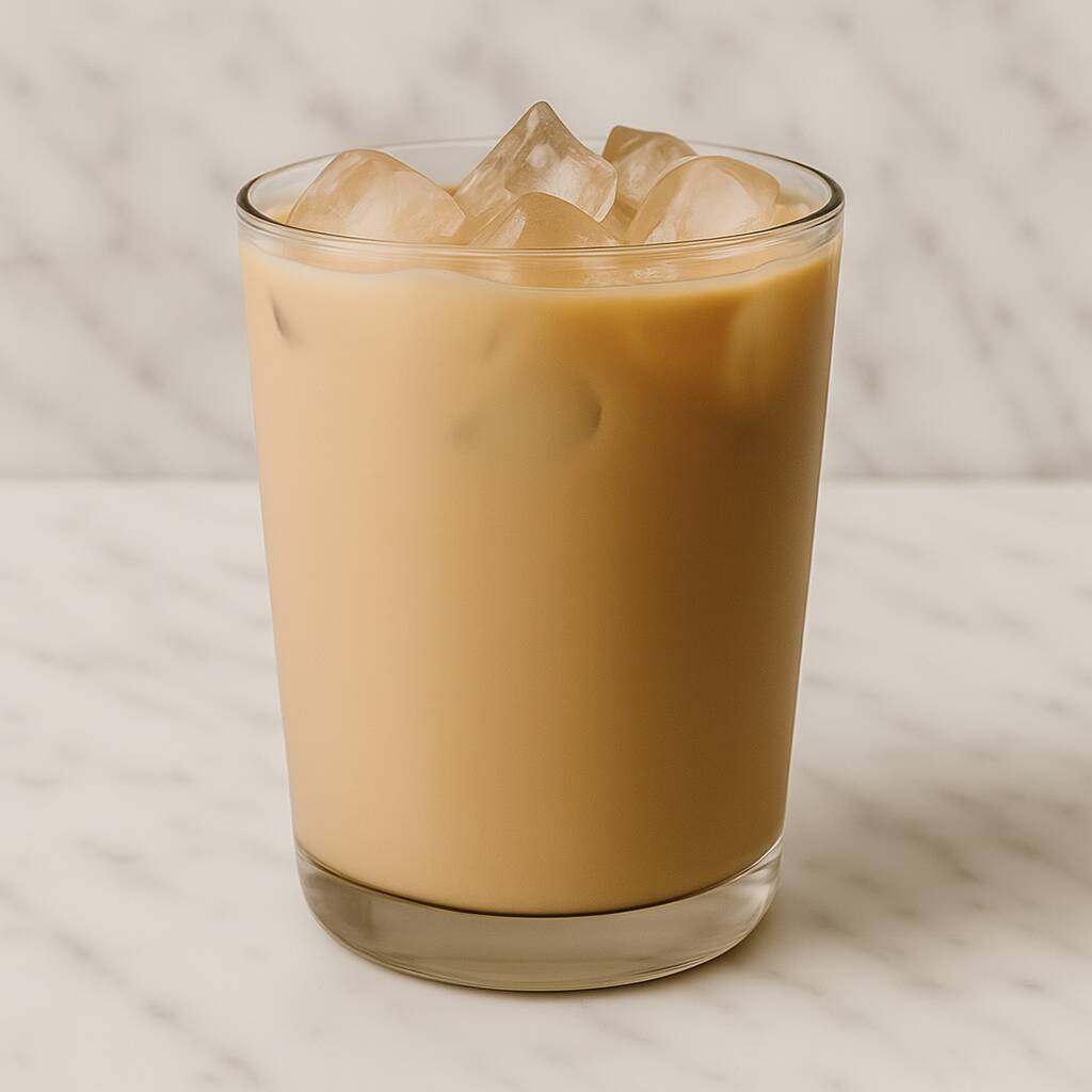 16 oz de café con leche que contiene una mezcla de sabores tradicionales de especias otoñales servida con hielo