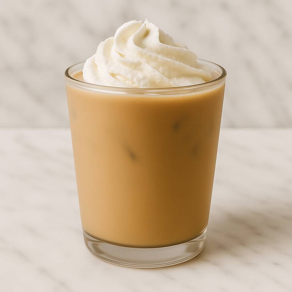 16 oz de frappé elaborado con leche, crema saborizada y hielo adornado con crema batida