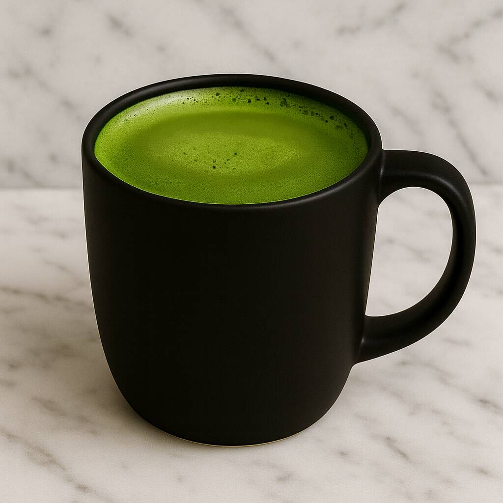 12 oz de té matcha mezclado con agua caliente y leche vaporizada